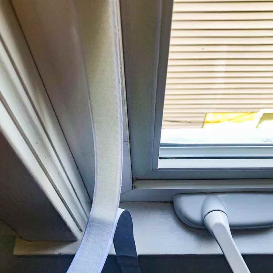 Begin at one corner of the window and work your way around the frame, peeling the adhesive backing from the velcro strip as you go. Press the strip firmly into the frame surface with steady, even pressure. Avoid stretching the strip as you apply it because stretching thins the adhesive layer and weakens the bond. At corners, cut the strip cleanly and butt the next section tightly against the end of the previous one to maintain a continuous fastening surface with no gaps.